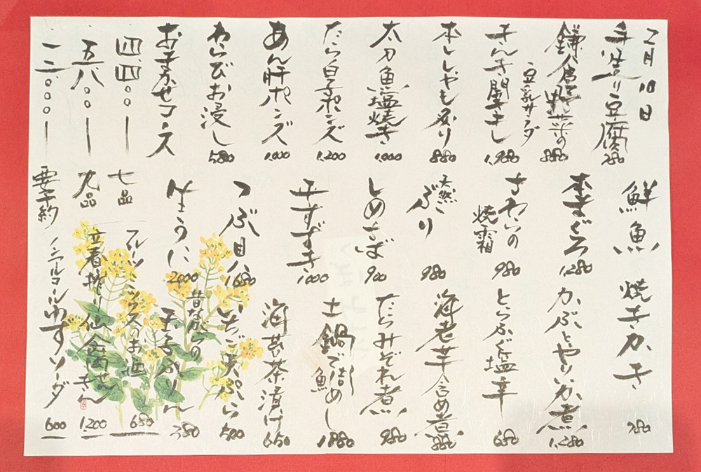 | 本日のお作り | 800円~ |